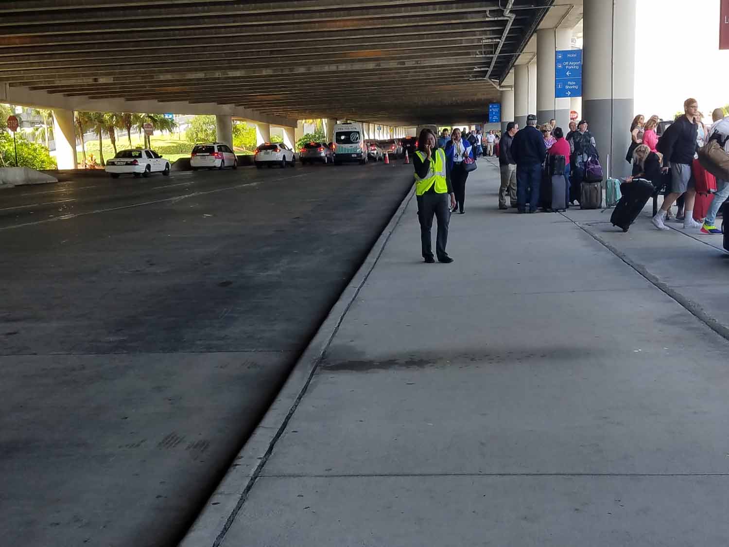 Pickup under sign that reads “Off Airport Parking Shuttles”